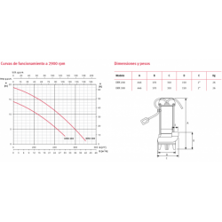 Paso máximo de sólidos: Ø 50 mm (modelos 200 y 300) Profundidad máxima de inmersión: 9 m. Temperatura máxima del líquido: 40 °C.