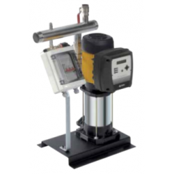 Sistema compuesto por una electrobomba fijada sobre bancada. En la impulsión de la bomba se ensambla una válvula de retención fabricada en acero inoxidable y una válvula de cierre, por este orden. La columna de impulsión se une al colector de impulsión, fabricado en acero inoxidable.