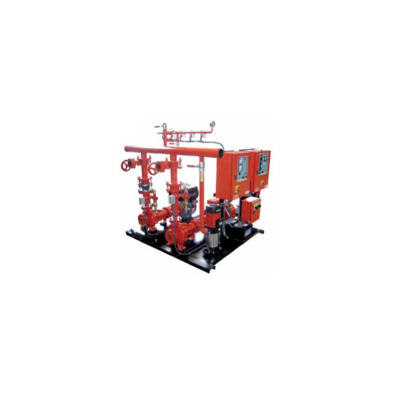 mantenimiento, válvula de retención en paralelo y válvula de desagüe para prueba de Presostatos. Válvula de seguridad regulable. Incluye acumulador hidroneumático de 24 litros. Cuadro eléctrico: armario metálico de color rojo RAL 3000 CC con interruptor general de corte. De acuerdo con las exigencias y modos de operación establecidos en la norma EN 23-5002012. Cableado y probado. Un cuadro eléctrico de control y maniobra por bomba de servicio. La control de la bomba jockey se incluye con la bomba se servicio eléctrica. El control de motor diesel incluye cofre para arranque manual y de emergencia. También se incluye depósito de combustible y doble juego de baterías de arranque. Accesorios opcionales: Circuito de pruebas con caudalímetro.