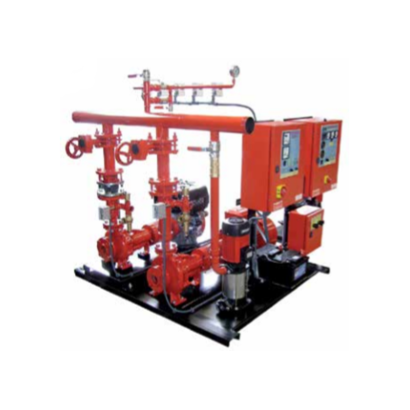 mantenimiento, válvula de retención en paralelo y válvula de desagüe para prueba de Presostatos. Válvula de seguridad regulable. Incluye acumulador hidroneumático de 24 litros. Cuadro eléctrico: armario metálico de color rojo RAL 3000 CC con interruptor general de corte. De acuerdo con las exigencias y modos de operación establecidos en la norma EN 23-5002012. Cableado y probado. Un cuadro eléctrico de control y maniobra por bomba de servicio. La control de la bomba jockey se incluye con la bomba se servicio eléctrica. El control de motor diesel incluye cofre para arranque manual y de emergencia. También se incluye depósito de combustible y doble juego de baterías de arranque. Accesorios opcionales: Circuito de pruebas con caudalímetro.