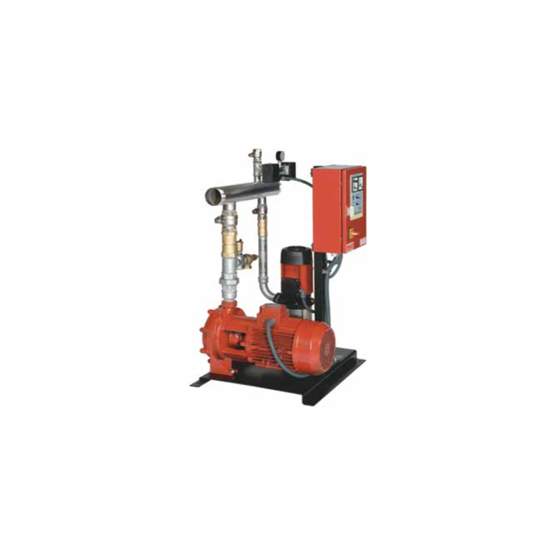 Instrumentación: dos presostatos del tipo normalmente cerrado. Manómetro de fondo de escala adecuado a la presión máxima del equipo. Colector de instrumentos construido en acero inoxidable. Válvula de aislamiento para favorecer las operaciones de mantenimiento. Incluye acumulador hidroneumático de 24 litros. Cuadro eléctrico: armario metálico de color rojo con interruptor general de corte. Preparado para cumplir todos los requisitos de la normativa interna ESPA.